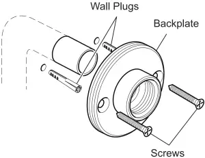 Caution! Take care not to drill into hidden pipes or cables. - Carefully fit the backplate over the outlet pipe and secure with the fixing screws (supplied).