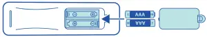 - Insert two AAA batteries (included), making sure to match the + and terminals to the symbols in the compartment.