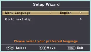 Press the buttons on your remote to select or change a setting. When you’re finished, press MENU to exit the Setup Wizard.