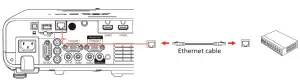 Connect the projector to your network using an Ethernet cable. See “Wired network configuration” for more information.