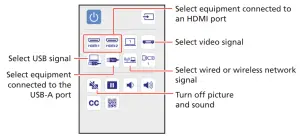 - Use the on-screen buttons to operate the projector, as you would using the remote control. See the online User’s Guide for details.
