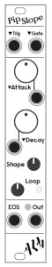 Offset knob controls for setting the times for the attack and decay stages, Time range from approx 1ms to 7 minutes per stage.