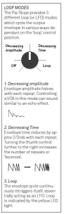 LOOP Controls if and how the output envelope cycles. See ‘Loop modes’ box for more info.