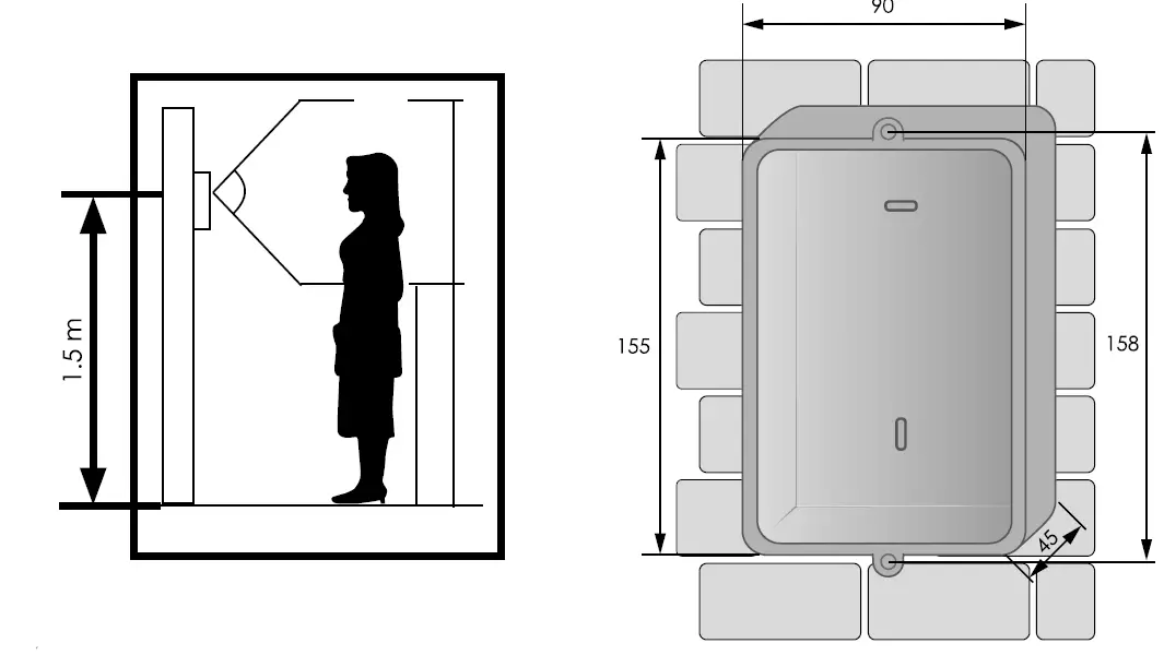 - Attach the outdoor station at a height of 1.5 meters mounted on a flat wall.