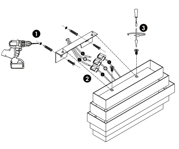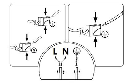 - Connect the wires of the lamp with the same color as the wires of the wall or the cell. PE or = green/yellow = ground wire. N =blue=neutral wire. L=brown (black) = phase.