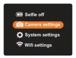 Make sure the Camera settings is selected on the on-screen menu, and press the Power / Shutter button