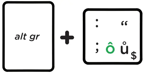 Typing characters while holding down the alt gr key shown below only works when the keyboard layout is set to Czech (QWERTY), Czech (QWERTZ), Slovak (QWERTY), or Slovak (QWERTZ).