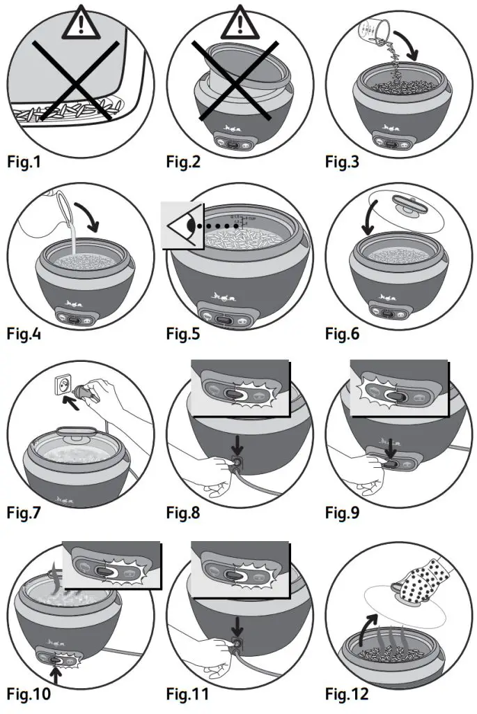 - Unplug the rice cooker from the mains supply – Fig 17 – and leave to cool for at least 1 hour – Fig 18.