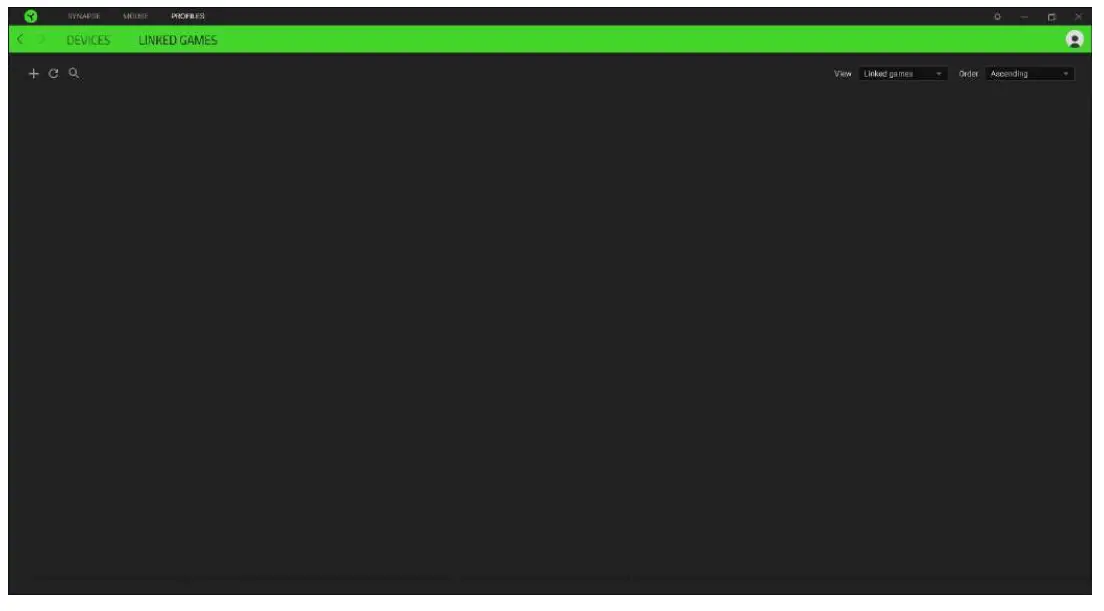 The Linked Games subtab gives you the flexibility to add games, view peripherals that are linked to games, or search for added games. You can also sort games based on alphabetical order, last played, or most played. Added games will still be listed here even if it is not linked to a Razer device.