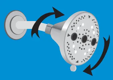 In a clockwise direction, screw your new showerhead onto the taped portion of the shower arm. Hand tightens only.