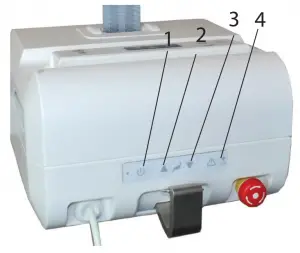 - Activate the emergency stop if the overhead lift is not to be used for a few days. Otherwise the batteries will run down