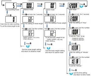 - Step counting ranging from 0 to 99999 steps.