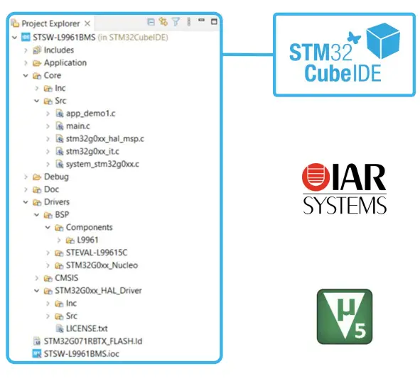 - STSW-L9961BMS (* ) SW package, containing source code and binaries, with standalone FW driver and application examples