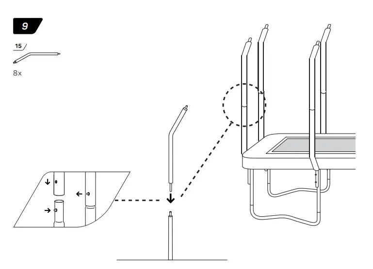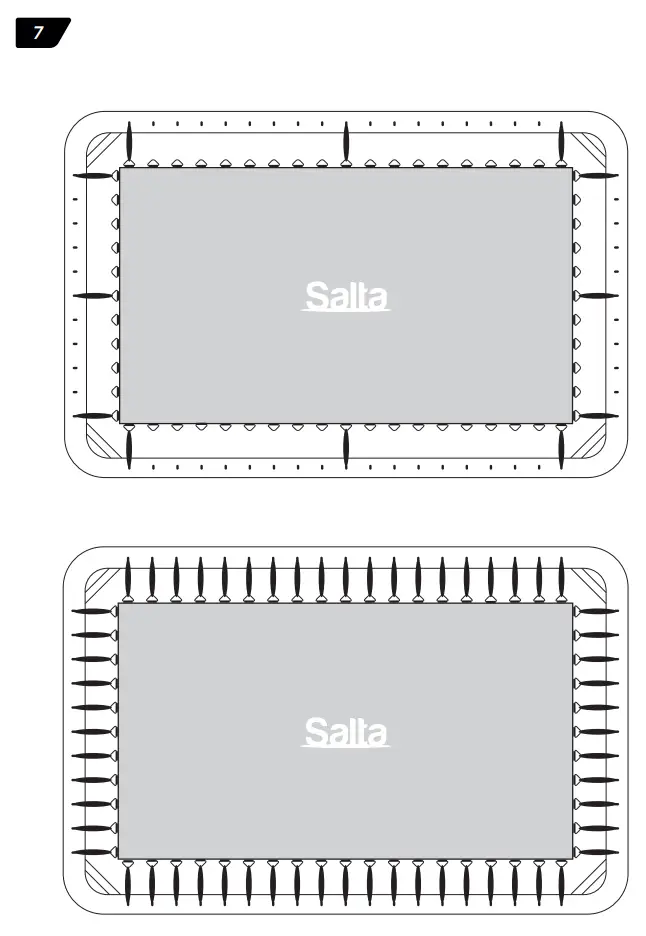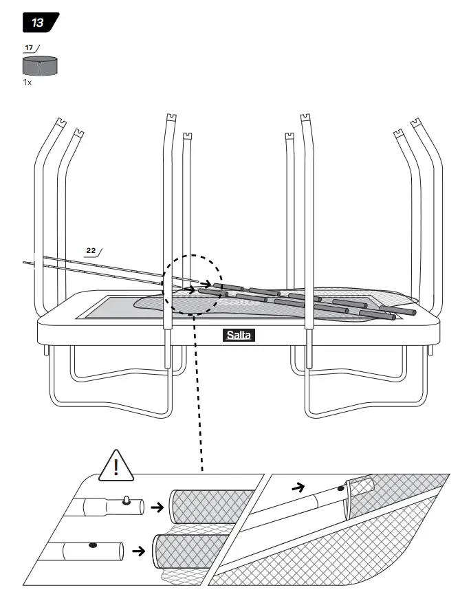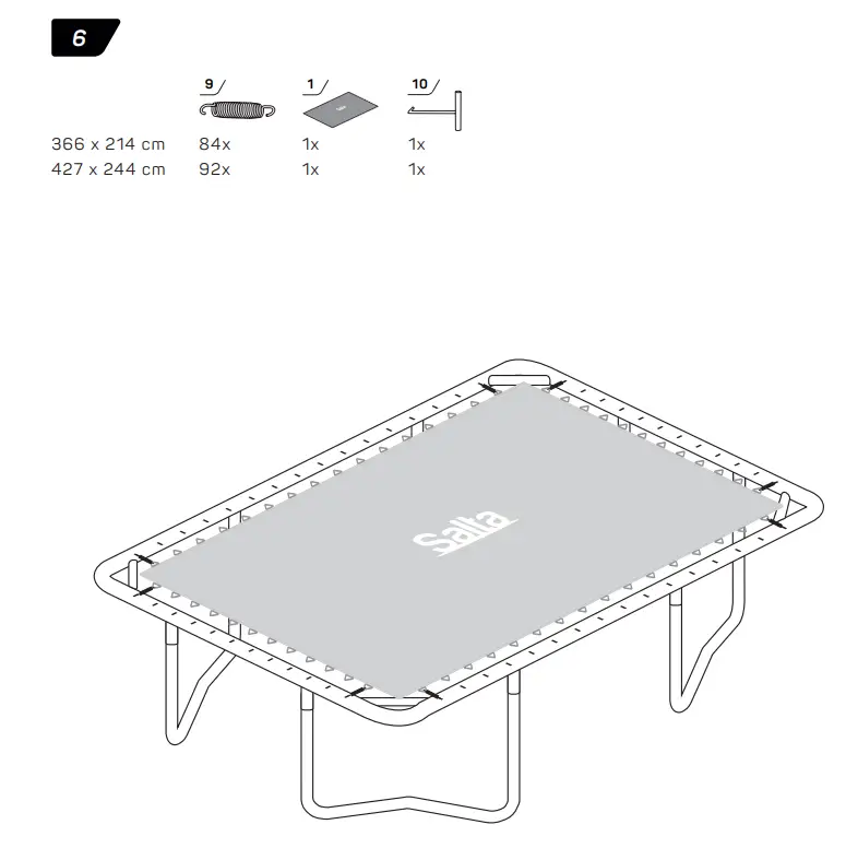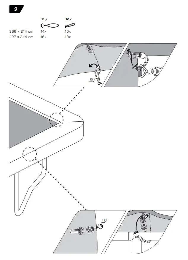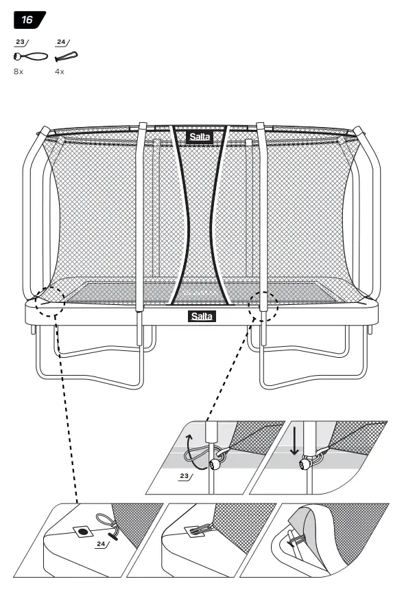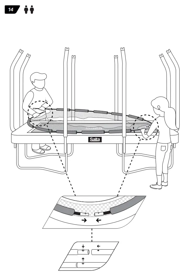 - Make sure that the hook-and-loop fasteners are closed correctly during use of trampoline