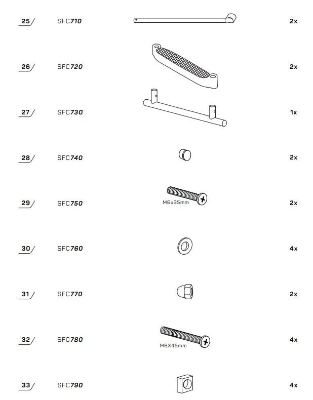 - Self-locking nuts are only to be used for a one-time setup.