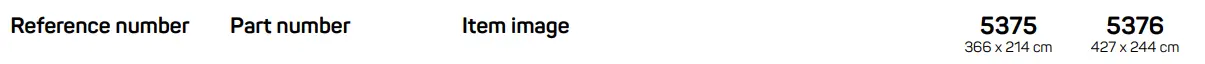 FIRST CLASS SIZE MAX. WEIGHT 5375 / 5376 366 x 214 / 427 x 244 cm 180 kg - WARNING! Always close net opening before jumping.