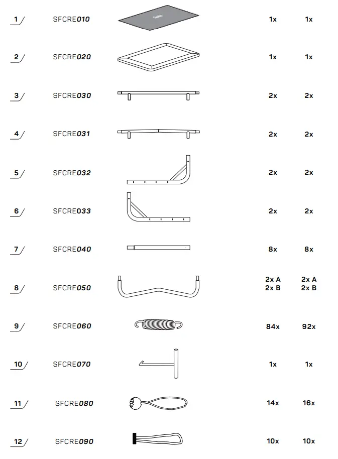 This trampoline was designed and manufactured with quality materials and craftsmanship. If proper care and maintenance is provided, it will provide all jumpers with years of exercise, fun, and enjoyment as well as reduce the risk of injury. Check and maintenance of the main parts (frame, suspension system, mat and padding) at the beginning of each season and also regular intervals. If these checks are not carried out, the trampoline could become dangerous. Please follow the guidelines listed below: