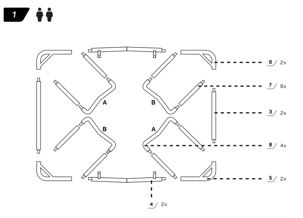- WARNING! The trampoline shall be assembled by an adult in accordance with the assembly instructions and thereafter checked before the first use.
