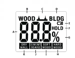 LCD Size 2 in. (51mm) diagonal with three 0.5 in. (13mm) high digits >70% for drywall and cement board