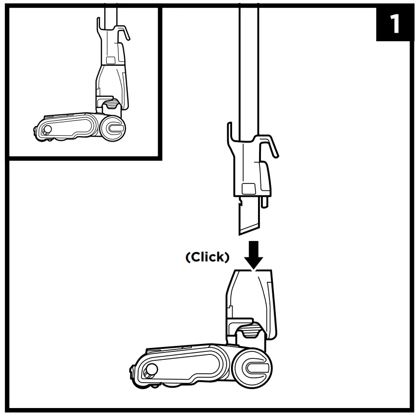 - Snap the Onboard Storage Clip onto the wand, then place accessories in the holder. Ensure all connections click securely into place.