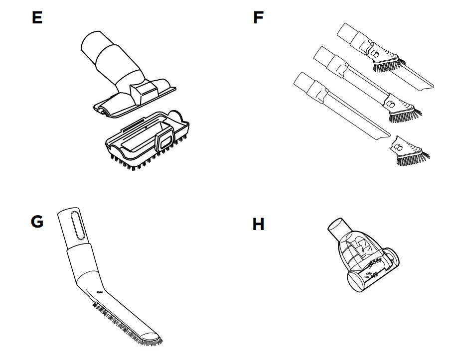| NOTE: All accessories are compatible with both the wand and the handheld vacuum |
