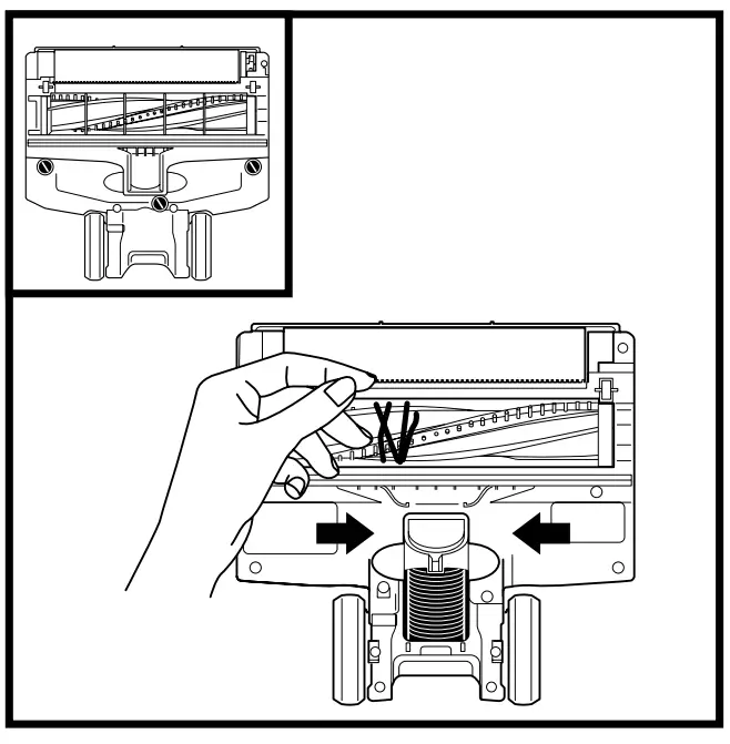 - If any string, hair, or carpet fibers remain wrapped around the brushroll after continued use, carefully clear them away.