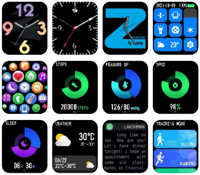 Once the device is powered ON and connected to the smart phone, the following are the display interface images which can be seen in ZEB FITSOCH smart watch .