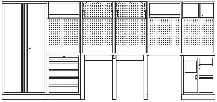 The assembly diagrams are only examples, the furniture can be configured in many different ways. Take into consideration the power points in the room when planning the configuration and assembly.