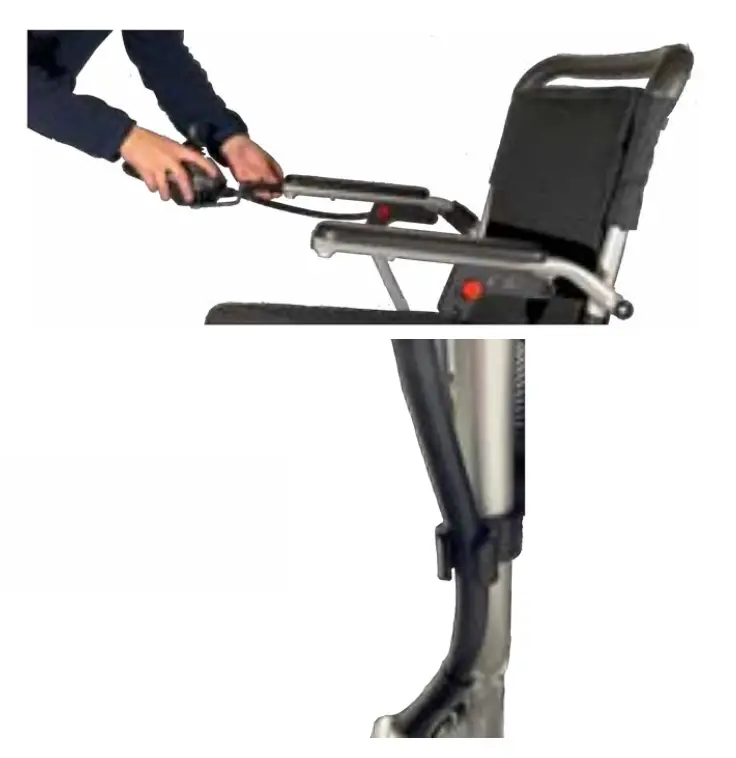 NOTE: Lift armrests upward to aid in getting on and off your electric wheelchair.