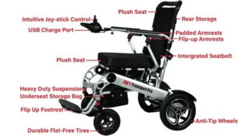 The Zip’r Transport Pro electric wheelchair consists of the following major components listed in the diagram below.