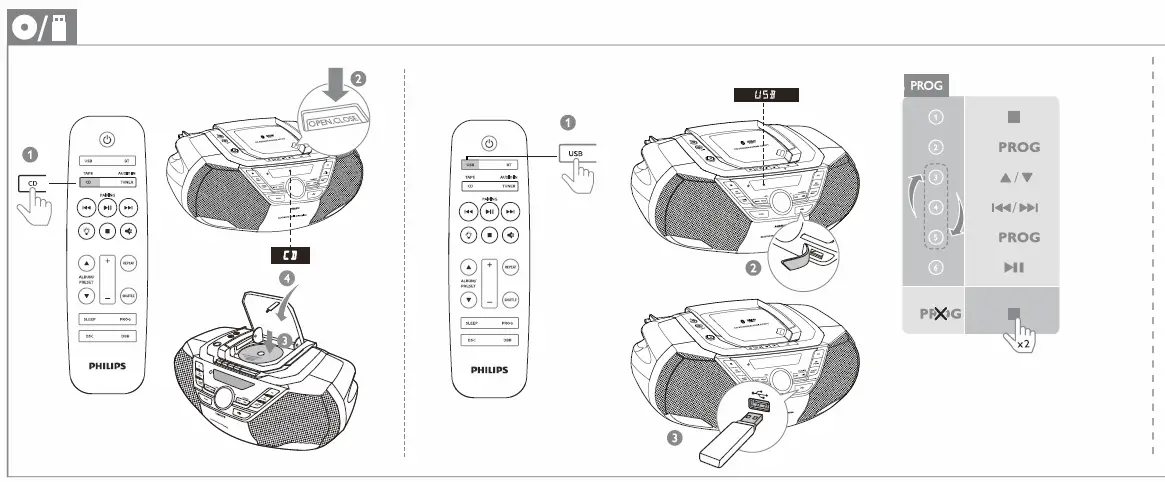 - Do not place any sources of danger on the CD soundmachine (e.g.liquid filled objiects, lighted candles).