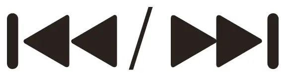 ![]() | Skip to the previous or next track. Press and hold to fast-forward or fast-reverse the track dunn,g playback. then release to resume play. |