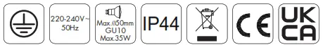This luminaire cannot be disposed together with normal domestic waste in standard rubbish can, but you have to bring it to a staging area for electrical waste - Take note of the symbols when connecting wires: