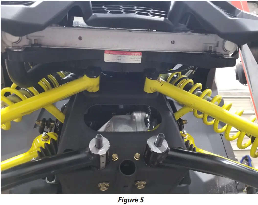 - Place the rear winch mount weldment over the four A-Arm mounting bolts shown in previous picture. Use the same orientation as shown in picture.