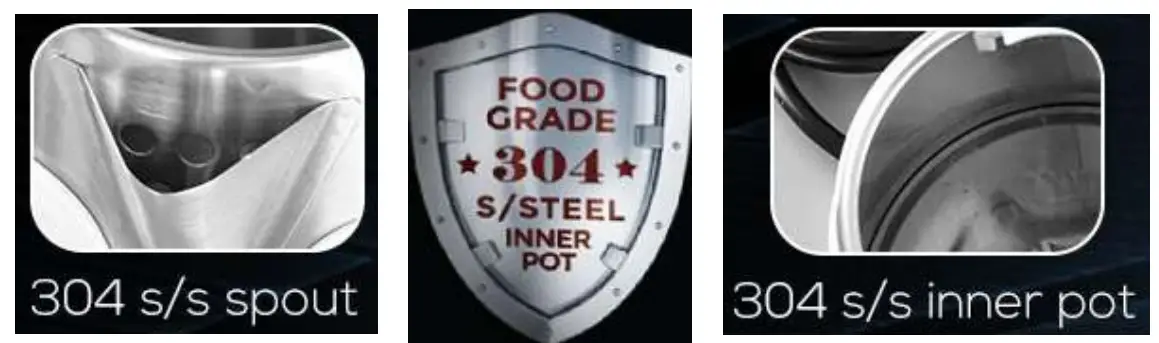 • touch any part of the appliance, except the Handle, ON/OFF Switch and power cable, when the appliance is filled with hot/boiling water. The Base and the bottom of the appliance become exceedingly hot as the appliance operates. Do note that the liquids & gases inside the appliance itself would still be very hot during heating, and for some time after the plug has been pulled out of the wall socket;