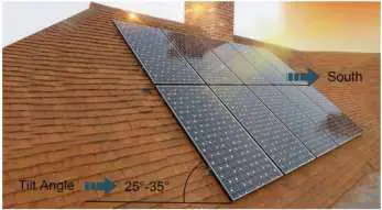For Northern Hemisphere installations, the solar panels should be mounted at an angle facing true south (true north for Southern Hemisphere installations). The mounting angle should be equal to the latitude location of where you are installing the solar panels. For example, the latitude of Miami, Florida, USA is 25 degrees. Therefore, solar panels installed in this area should ideally be facing true south at a tilt angle of 25 degrees.