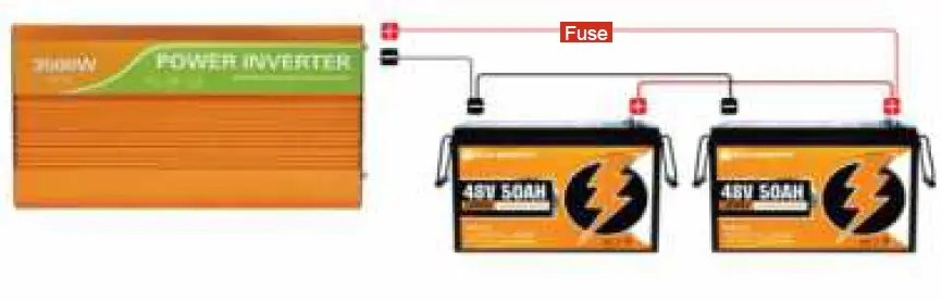 The inverter in this system requires a 24V battery bank for running. With 2 pieces of batteries, the connection should be: