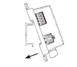 Catch the EZ Mount hook on the edge of the DIN Rail, then rotate into place.