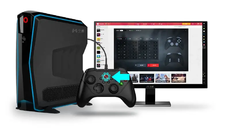 Use USB cable to connect the Controller and computer together, and then press the BEITONG Logo (HOME Button) to turn Controller on. The connection is completed when the Controller vibrates and the breathing light is on.