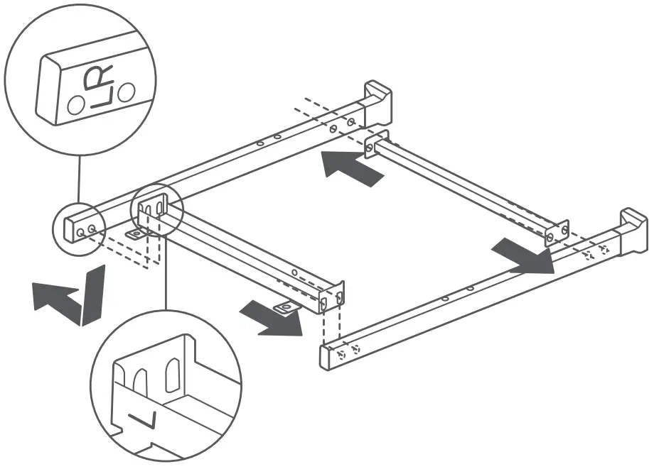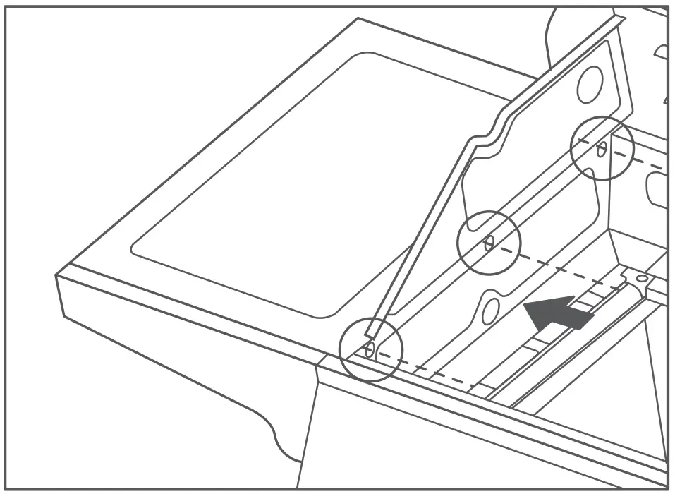 - Attach the right tale facet assembly to the two screws through the keyhole and tighten the screws.