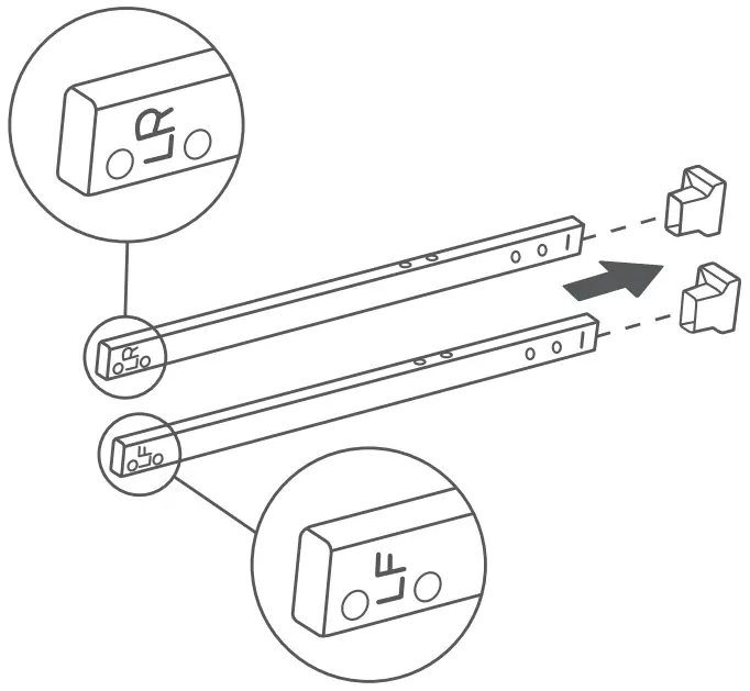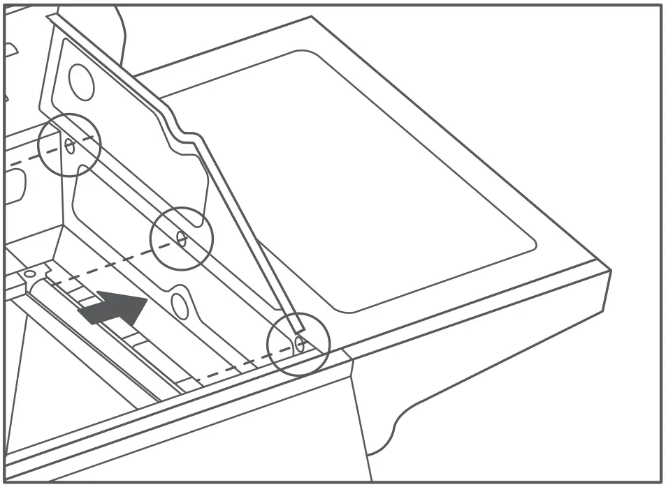 - Attach the left table facet assembly through the keyhole to the two screws and tighten the screws