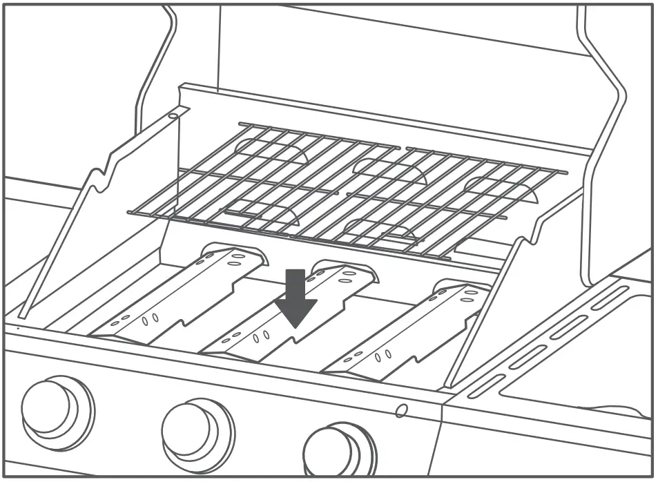 ” and close the gas cylinder valve. - Remove cooking grills and heat distribution plates.