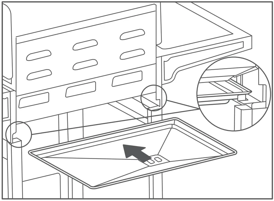- Put the fire distributing panel into the firebox. Note that the fire distributing panel should be properly placed in the groove of the firebox, as shown in the enlarged picture.