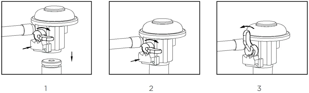 - A regulator complying with the in force national norm will have to be connected to the gas tank in order to obtain the appropriate gas pressure.