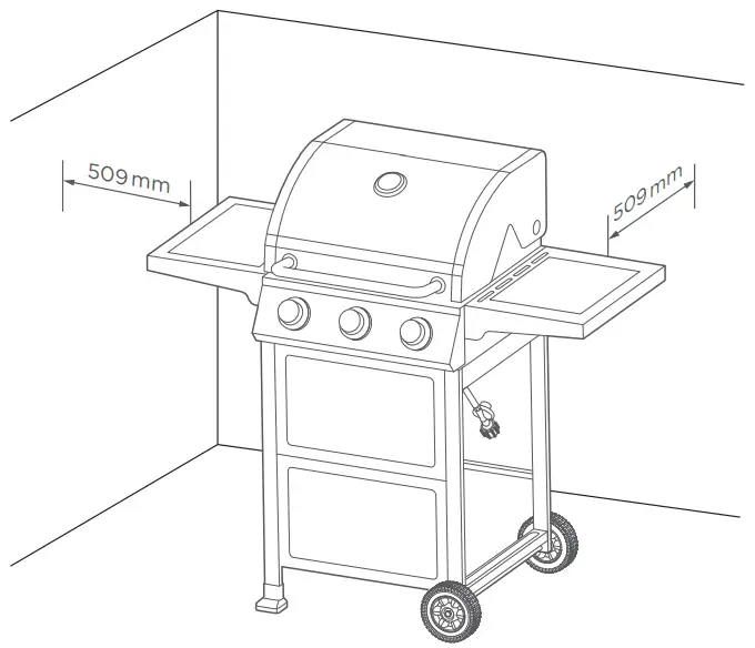 - Only use this gas grill outdoors in a well-ventilated area. Do not use it in a garage, building, alley way or any other enclosed area. Do not use the grill under overhead combustible construction.