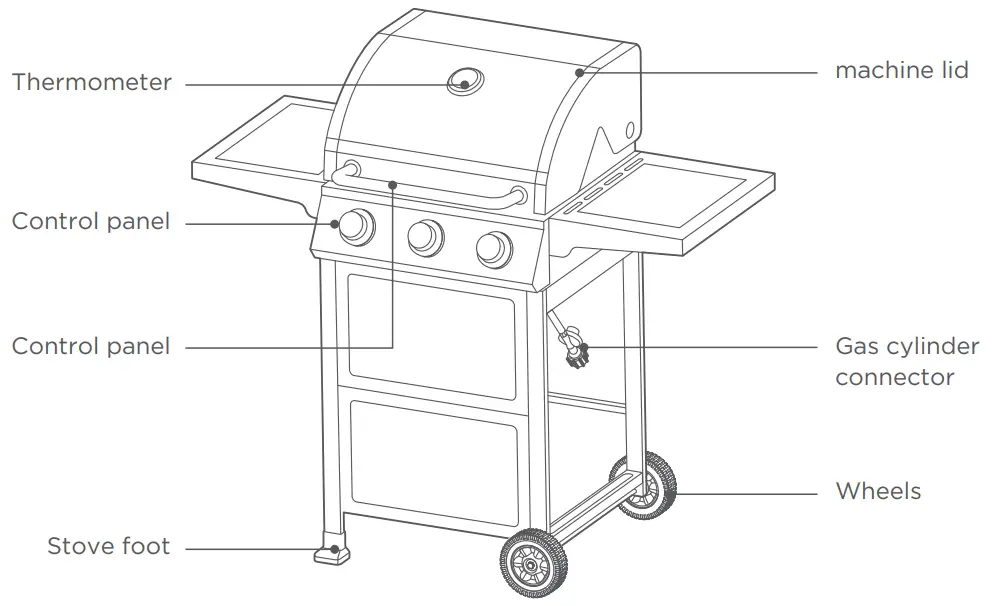 - If a gas leak occurs, turn off the gas tank immediately. Remove allaccessories and contact your local fire department, then after-sales service.