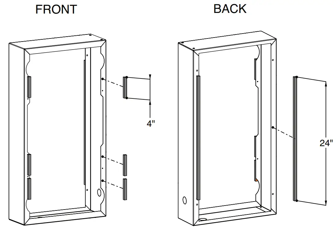 Install 24″ foam tape to the back as shown. Do not cover holes for fastening.