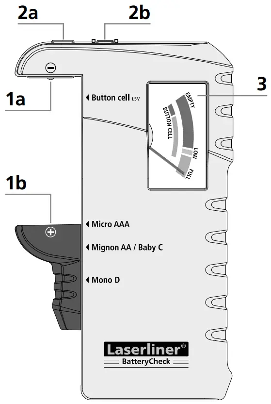 2b Positive pole, battery holder - 3-colour display scale green: good orange: weak red: replace