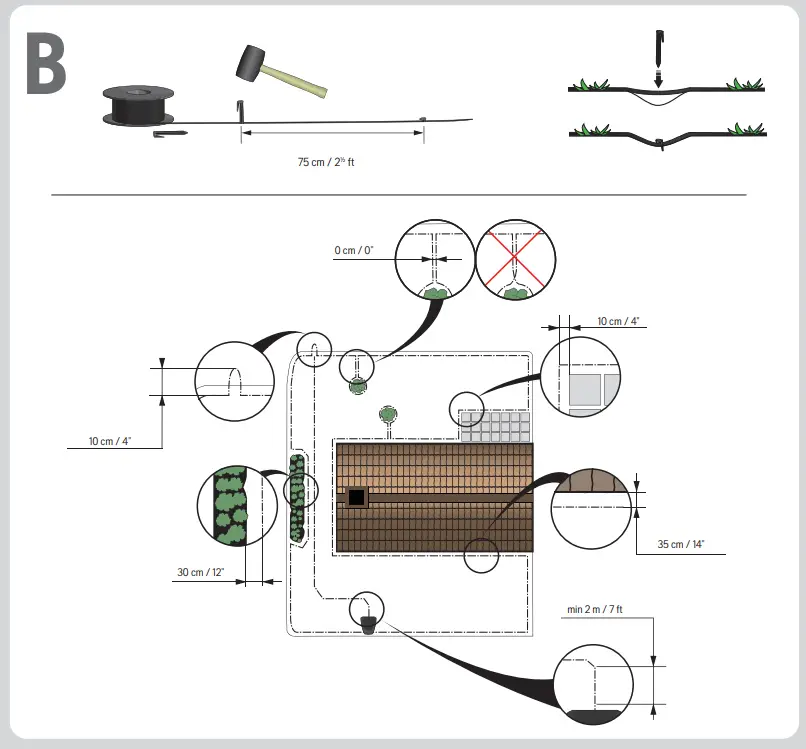 - Lay the boundary wire so that it forms a loop around the working area.