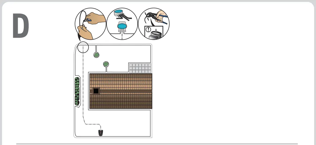 - Press the connectors together using a pair of pliers. Cut off any surplus boundary wire. Cut 1-2 cm / 0.4-0.8” above the connectors.